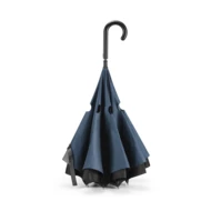 Regenschirm aus 190T Pongé, umkehrbar und doppellagig. Dieser hat einen Stock aus Metall und Fiberglas Speichen. Das patentierte Gestell hat eine manuelle Öffnung und eine automatische Schliessung. ø1050 x 790 mm