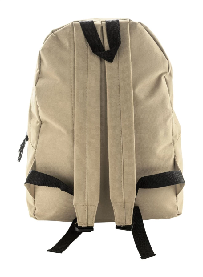 Rucksack mit Reißverschlusstasche, gepolsterter Rückenpartie und gepolsterten Tragegurten. Material: 600D Polyester.