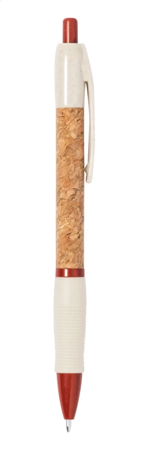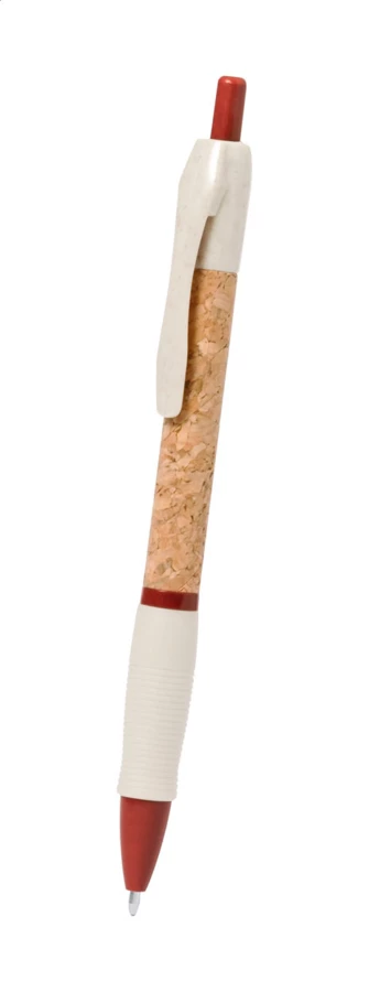 Ökologischer Kugelschreiber aus Weizenstroh-Kunststoff, Schaft mit Naturkork überzogen und Gummigriffzone. Mit blauschreibender Mine.
