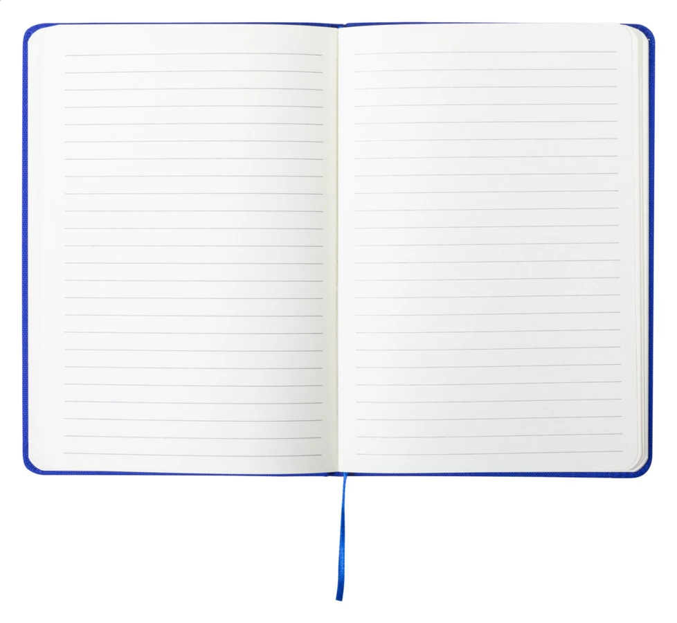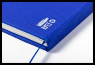 Notizbuch mit RPET-Polyester überzogen, mit 80 Seiten (liniert), Lesezeichen und Gummiband. Größe A5.