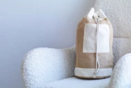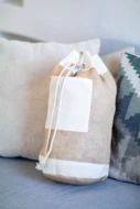 Jute-Seesack mit Baumwolltasche und Kordelzugverschluss.