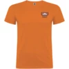Kurzärmeliges T-Shirt mit doppellagigem Rundhalsausschnitt aus Elasthan, hergestellt aus schlauchförmigem Material für Erwachsene. Verstärkte und verdeckte Nähte am Kragen. Herausnehmbares Etikett. Das Modell ist 190 cm groß und trägt Größe L.