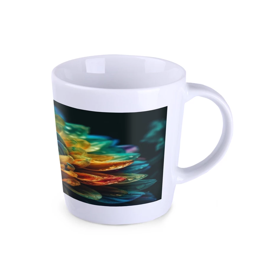 Ein klassischer Porzellanbecher mit vielen Möglichkeiten zur individuellen Gestaltung. Die großen geraden Wände bringen den Aufdruck perfekt zur Geltung.