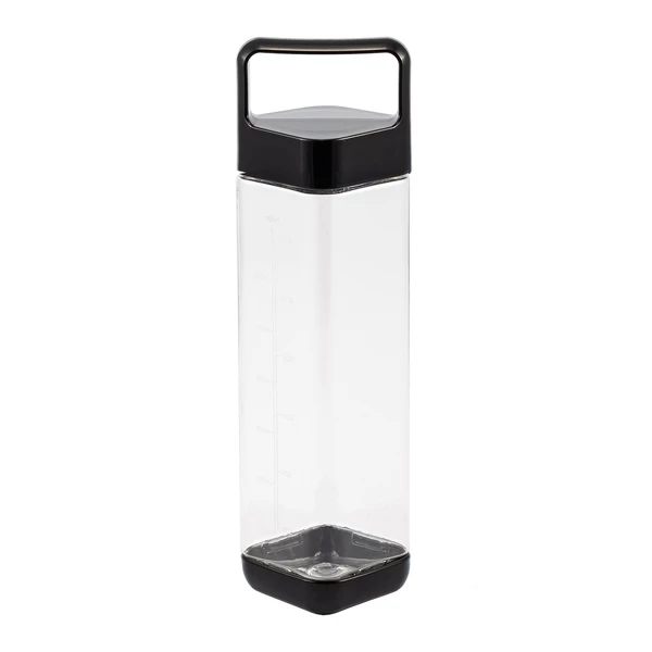 Bidon o nietypowym kwadratowym kształcie z wygodnym uchwytem. Pojemność 800 ml. Wykonany z tritanu. Wolny od BPA.