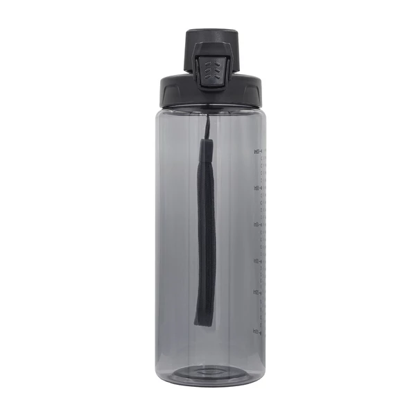 Bidon 700 ml wykonany z tritanu, wytrzymałego i przejrzystego tworzywa niezawierającego BPA. Bidon posiada miarkę, uchwyt na nadgarstek, funkcję podwójnego zabezpieczenia przed wylaniem wody - przycisk i haczyk. Co istotne, jest łatwy w myciu.