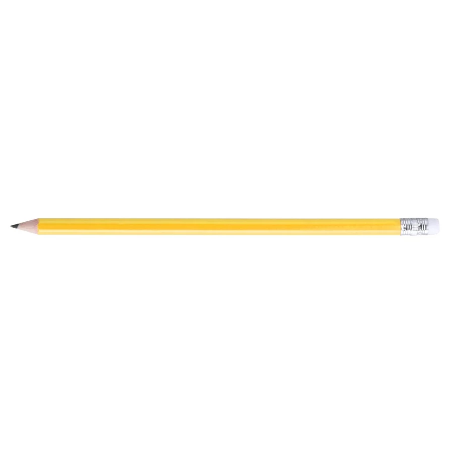 Bleistift mit Radiergummi und farbigem Schaft, hat eine angespitzte Spitze, Produkt aus Holz