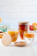 Doppelwandiger Thermobecher aus Borosilikatglas mit Bambusdeckel. Füllmenge: 420 ml. Einzeln in Kraftpapierbox.