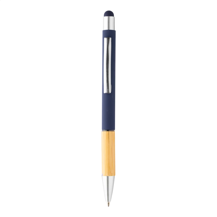 Kugelschreiber mit Touchpen aus Aluminium und Griff aus Bambus sowie mattem Finish, blauschreibend.