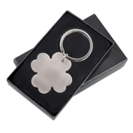 Wykonany ze stali nierdzewnej brelok w kształcie koniczynki. Pakowany w czarne opakowanie upominkowe.