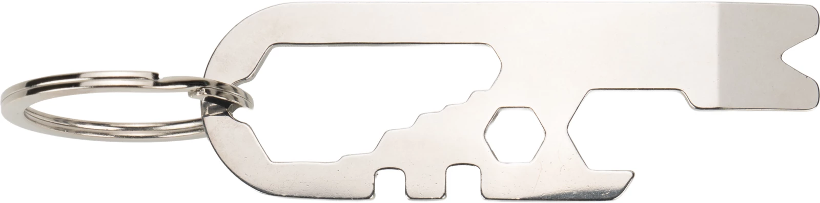 Wielofunkcyjny brelok marki Schwarzwolf zawierający 13 różnych narzędzi, w tym linijkę, magnes, klucz w 6 rozmiarach oraz otwieracz do butelek.