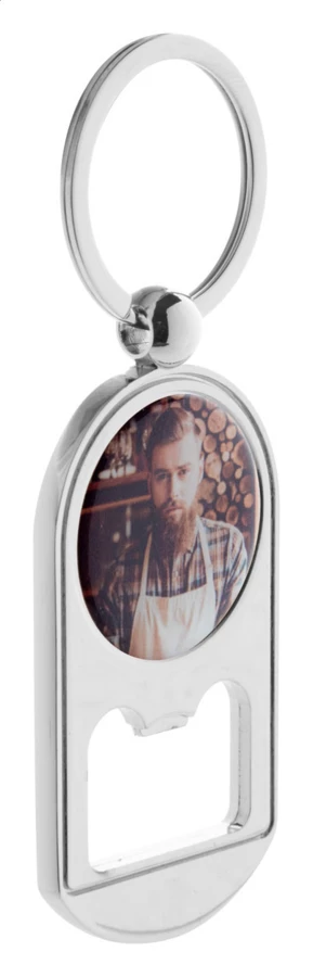 Flaschenöffner aus Metall mit Schlüsselring und Doming-Druck. Preis inkl. Doming. Einzeln in schwarzer Geschenkbox. Mindestmenge: 100 Stk.