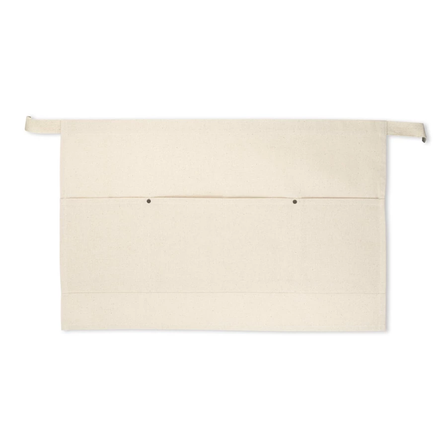 Mehrzweckschürze aus Leinen Baumwolle (260 g/m²) mit drei Vordertaschen und Befestigungsbänder. Das Produkt wird unter zertifiziertem Standard für die Verwendung von Schadstoffen in Textilien hergestellt. 580 x 375 mm