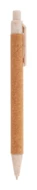 Kugelschreiber aus ökologischem Weizenstrohkunststoff mit einer Ummantelung aus natürlichem Kork, blauschreibend.