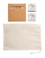 Weihnachts-Memory-Spiel zum Ausmalen in einer Tragetasche aus Baumwolle. Beinhaltet Papp-Memory-Spiel (24 Plättchen) mit Weihnachtsmotiven und Holz-Buntstiften (12 Stück) in einer Pappschachtel.