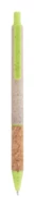 Kugelschreiber aus ökologischem Weizenstrohkunststoff mit Griffzone aus natürlichem Kork und farbigen Elementen, blauschreibend.