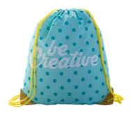 Individueller Turnbeutel mit verstärkten Ecken aus Kunstleder und farblich angepassten Zugkordeln, Material: 190T Polyester. Der Preis ist inkl. vollflächigem Sublimationsdruck. Mindestmenge: 25 Stk.