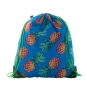 Individueller Turnbeutel mit verstärkten Ecken aus Kunstleder und farblich abgestimmten Zugkordeln, Material: 190T RPET Polyester. Der Preis ist inkl. vollflächigem Sublimationsdruck und RPET-Label. Mindestmenge: 25 Stk.