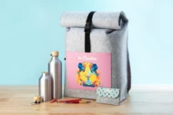 Individueller Rolltop-Rucksack aus RPET Filz mit einem Hauptfach, vollfarbigem Druck auf der Vordertasche und RPET-Label. Der Preis ist inkl. Sublimationsdruck. Mindestmenge: 25 Stk.