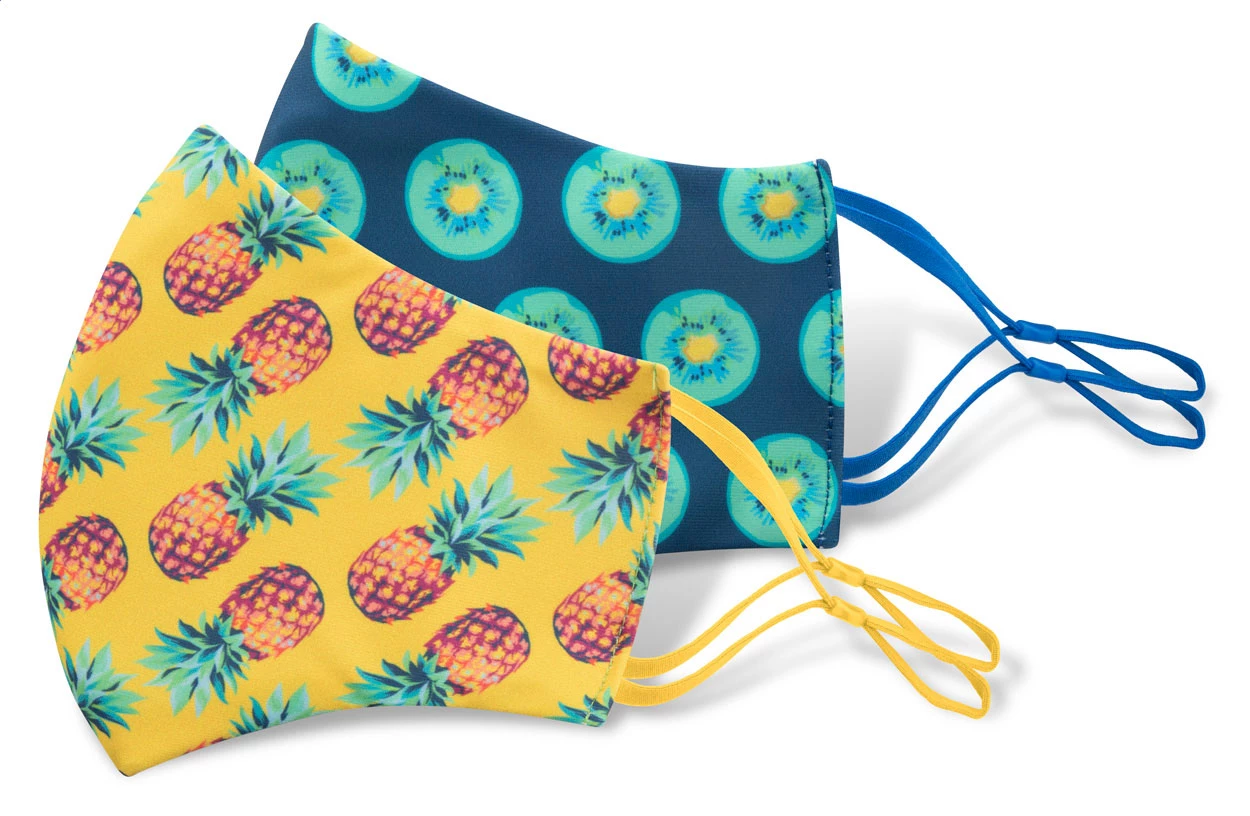 Individuelle, waschbare und wiederverwendbare Gesichtsmaske (zweilagig) mit verstellbaren elastischen Ohrschlaufen und Sublimationsdruck. Erwachsenen-Größe. Material: 100% Polyester (140g/m²) and 100% Baumwolle (140g/m²). Der Preis ist inkl. Sublimationsdruck. Mindestmenge: 50 Stk.