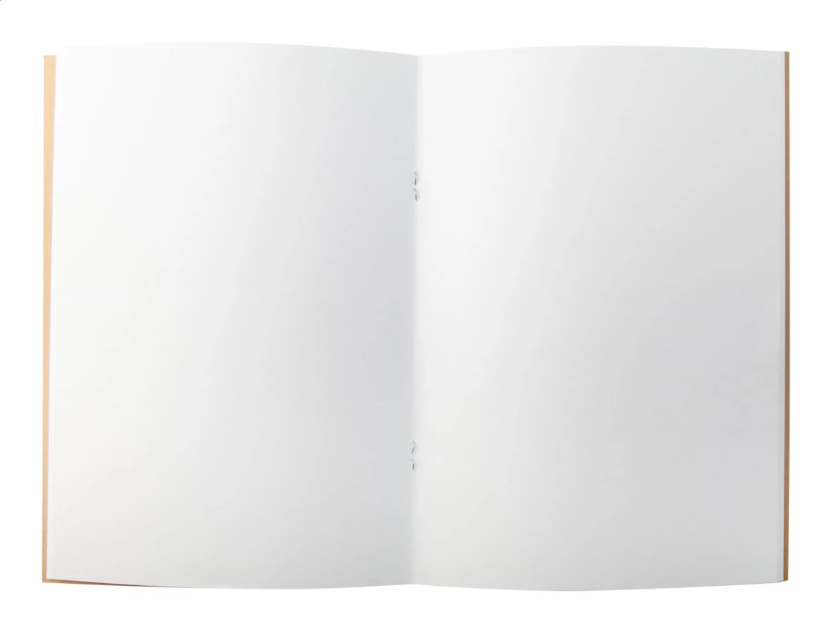 Individuelles A6 Notizbuch mit Kraftpapierumschlag und 32 Seiten (blanko) aus Recyclingpapier. Der Preis ist inklusive vollfarbigem Druck auf der Umschlagaußenseite. Mindestmenge: 100 Stk.