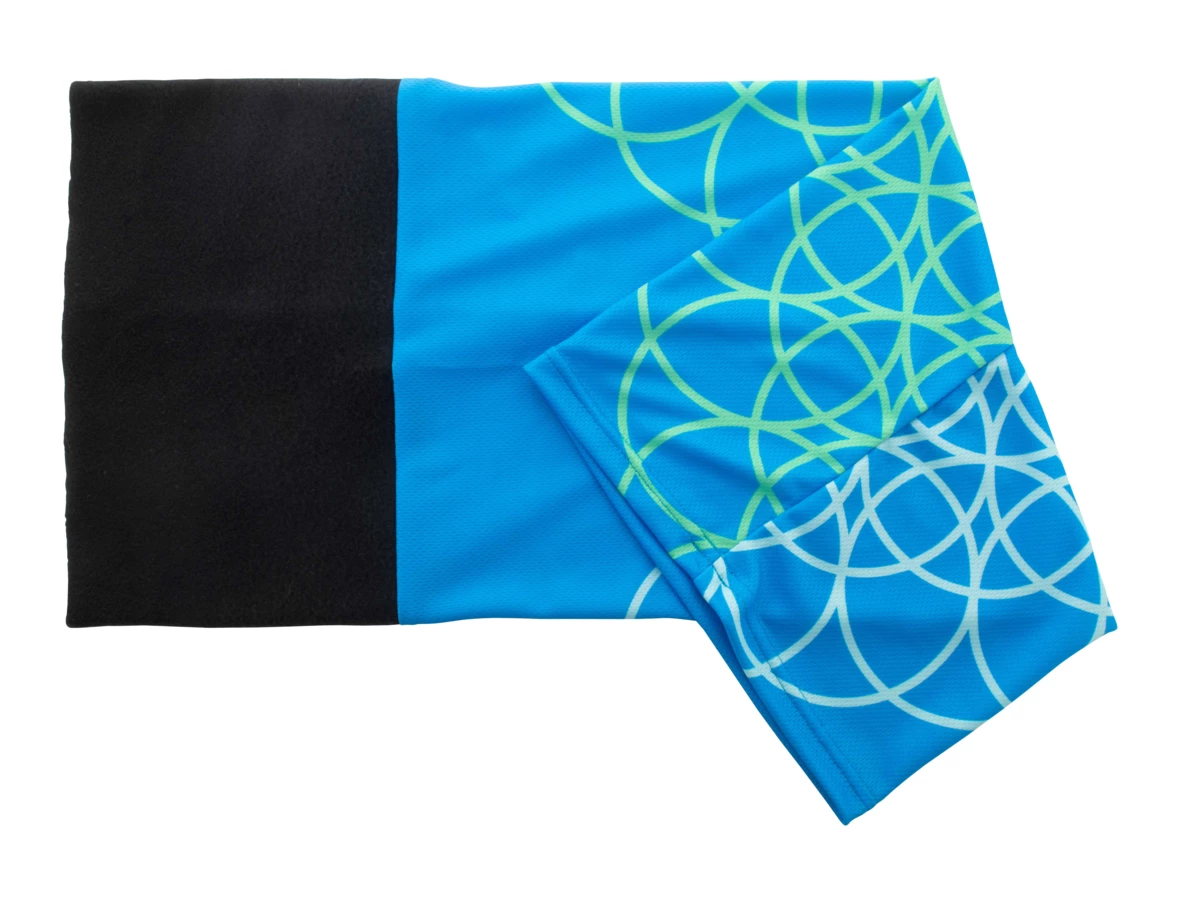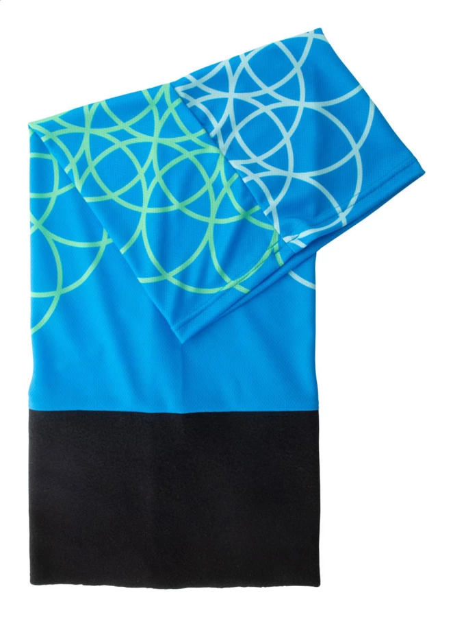 Individueller Multifunktionsschal aus atmungsaktivem und schnell trocknendem Polyester mit farbigem Polarfleece-Halswärmer. Der Preis ist inkl. vollflächigem Sublimationsdruck auf dem Polyesterteil. Material: 100 % Polyester (135 g/m²) und Polarfleece (160 g/m²). Mindestmenge: 100 Stk.