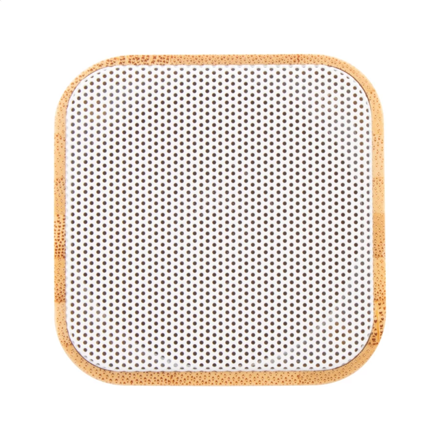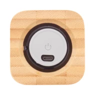 Kabelloser Lautsprecher im Bambusgehäuse mit Freisprechfunktion und eingebautem Akku. Inklusive USB-Ladekabel.