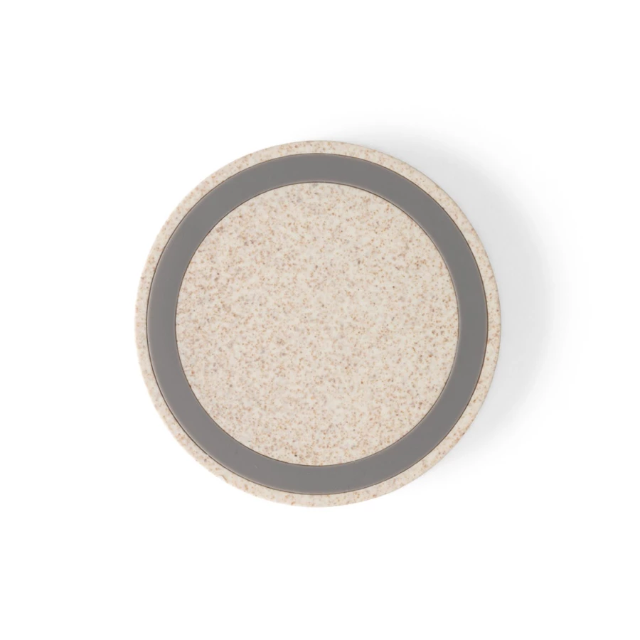 Kabelloses Ladegerät in runder Form, konzipiert, um auf das traditionelle Laden mit Kabeln zu verzichten. Die Basis verfügt über einen Silikonring, damit das Gerät während des Ladevorgangs nicht verrutscht. Da das Produkt aus natürlichen Materialien hergestellt wird, können Farbe des Produkts sowie das Druckergebnis von Produkt zu Produkt unterschiedlich sein.Material: ABS (65% recyceltes), 35 % WeizenstrohfasernKabellose Ladeleistung: 15 WEingang: USB-C (18 W)Inklusive: USB-A / USB-C KabelLieferung: Geschenkbox aus KraftpapierAbmessungen: ø70 x 10 mm