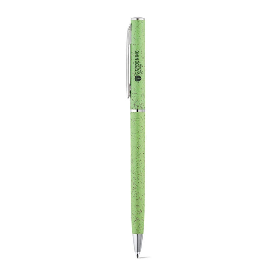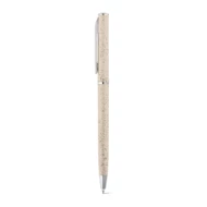 Kugelschreiber aus Weizenstrohfaser und ABS mit schwarzschreibender Mine. Mit Drehmechanismus und Clip aus Metall. Da das Produkt aus natürlichen Materialien hergestellt wird, können Farbe des Produkts sowie das Druckergebnis von Produkt zu Produkt unterschiedlich sein. ø8 x 126 mm