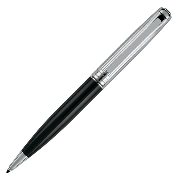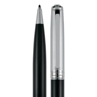 Metalowy długopis z czarnym, lakierowanym korpusem i srebrnymi elementami. Wyposażony w wysokiej jakości niebieski wkład z końcówką 1 mm. W zestawie z wkładem zapasowym piszącym na czarno. Zapakowany w eleganckie pudełko prezentowe z certyfikatem autentyczności Pierre Cardin.