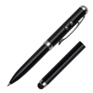 Długopis ze wskaźnikiem laserowym, latarką LED oraz końcówką przystosowaną do obsługiwania ekranów dotykowych. Dołączone baterie 3 x LR41. Pakowany w srebrne aluminiowe opakowanie upominkowe.