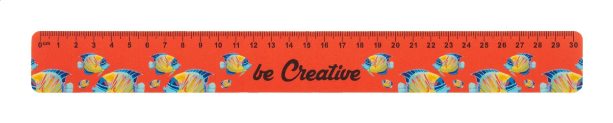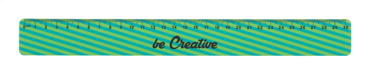 Flexibles Kunststofflineal (30 cm) mit vollfarbiger Bedruckung. Der Preis ist inkl. UV LED Druck auf einer Seite. Mindestmenge: 100 Stk.