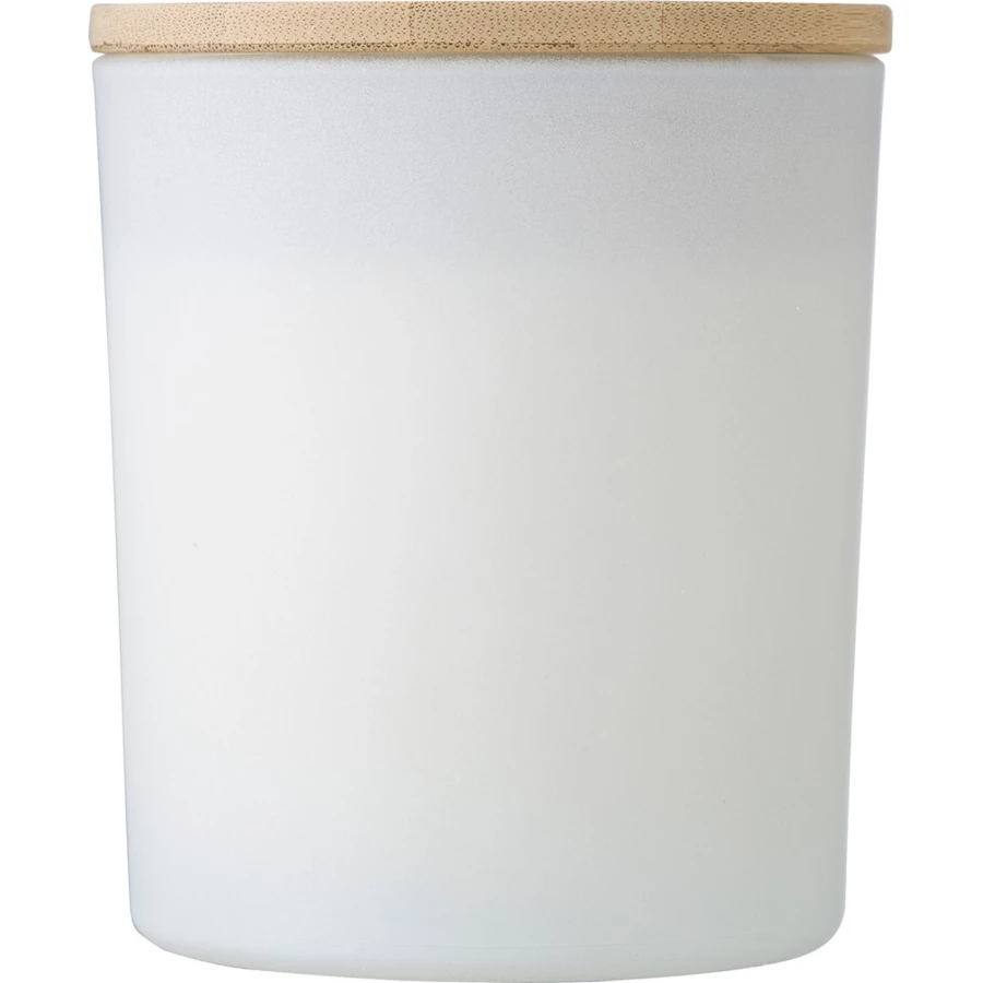 Duftkerze im Glas mit Bambusdeckel (02-Vanille, 05-Zimt, 03-Sandelholz, 06-Jasmin), enthält überwiegend pflanzliches Wachs (Carbauba-Wachs), Brenndauer ca. 20 Stunden