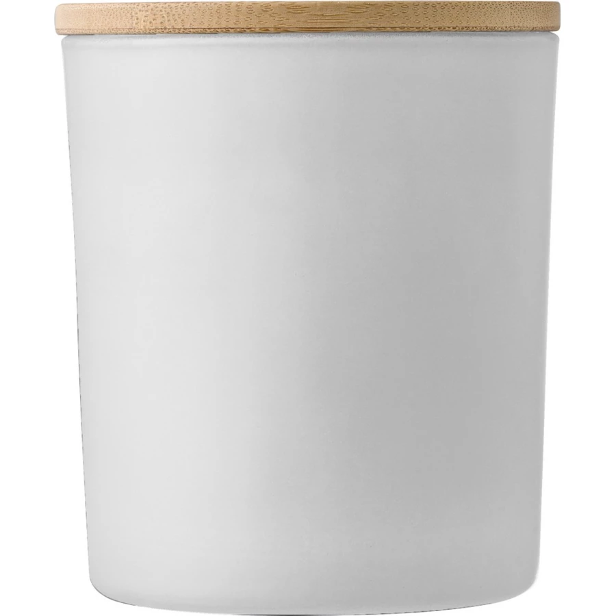 Duftkerze im Glas mit Bambusdeckel, enthält überwiegend pflanzliches Wachs (Carbauba-Wachs), Brenndauer ca.20 Stunden (in einer Tube verpackt Ø8,5 cm)