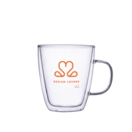 Ein interessantes Modell eines Glasbechers. Es ist aus leichtem, doppelwandigem Glas hergestellt, das einen erstaunlichen Effekt erzielt, indem es das Getränk im Inneren schweben lässt.