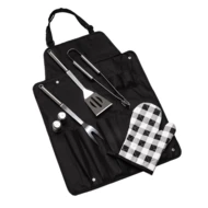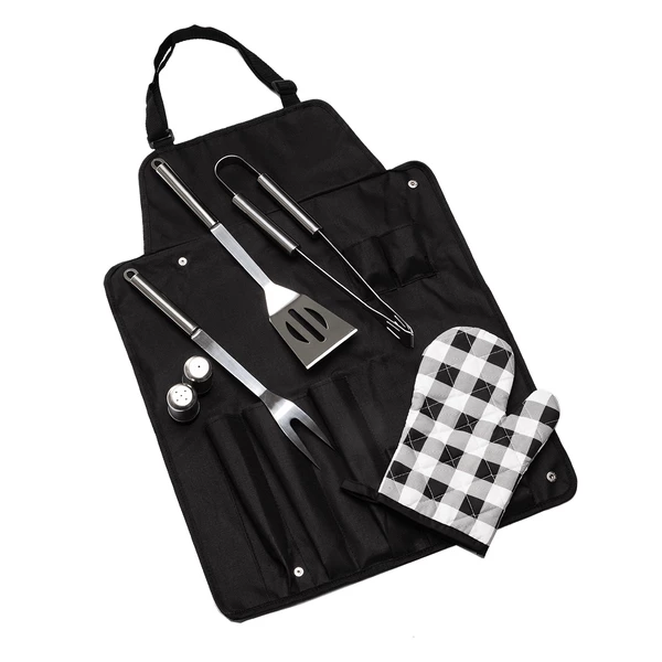 Nylonowy fartuch grillowy z 7-elementowym wyposażeniem. Wykonany z metalu oraz nylonu.