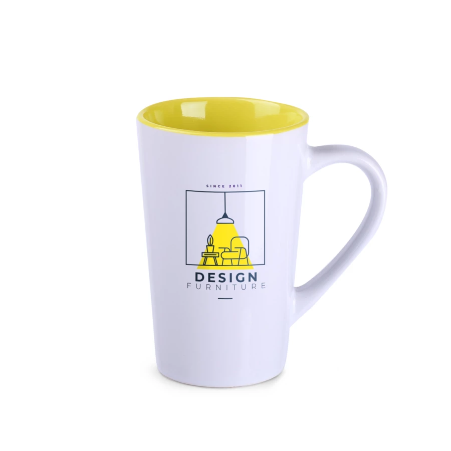 Klassischer Becher mit trapezförmiger Form und hohen Wänden. Er ist in sechs Innenfarben erhältlich. Ideal für große und anspruchsvolle Dekorationen.