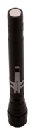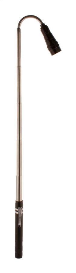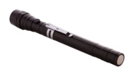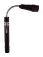 Aluminium-Taschenlampe mit 3 LED's, ausziehbarem und flexiblem Kopf, Magnet an der Oberseite und seitlichem Metallclip. Inklusive Knopfzellenbatterien. Max. Länge: 57 cm.