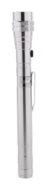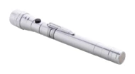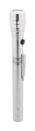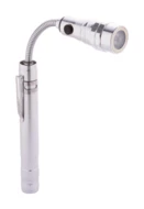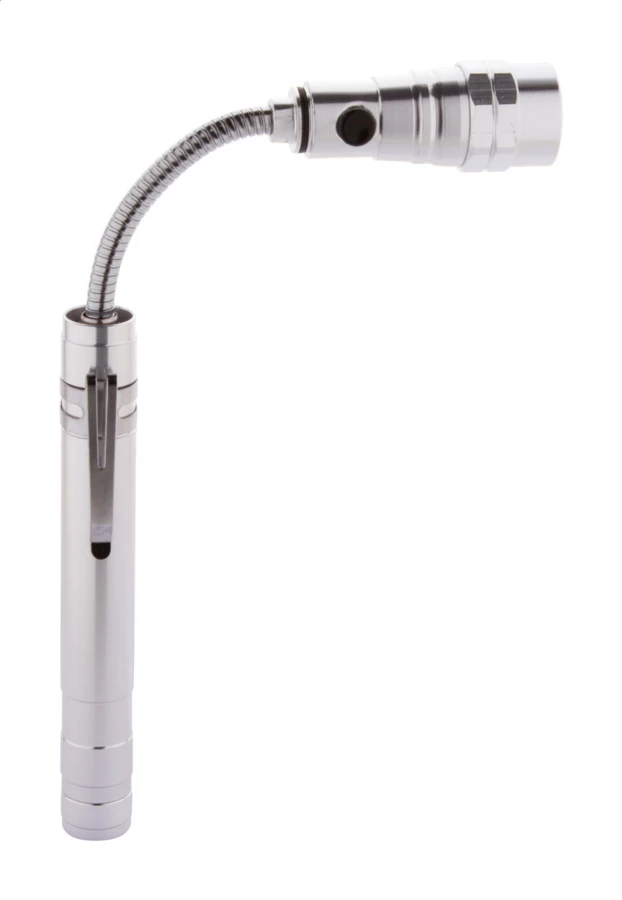 Aluminium-Taschenlampe mit 3 LED's, ausziehbarem und flexiblem Kopf, Magnet an der Oberseite und seitlichem Metallclip. Inklusive Knopfzellenbatterien. Max. Länge: 57 cm.