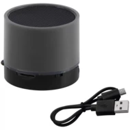 Mini głośnik Bluetooth TAIFUN w plastikowej obudowie z metalicznym wykończeniem.W zestawie kabel.