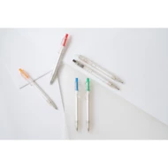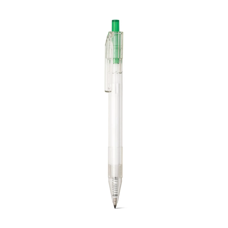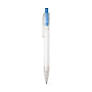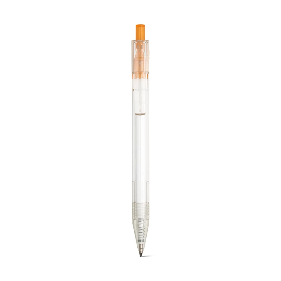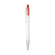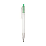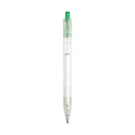 Kugelschreiber aus transparentem 100% rPET mit farbigem Druckknopf und schwarzschreibender Mine. ø11 x 142 mm