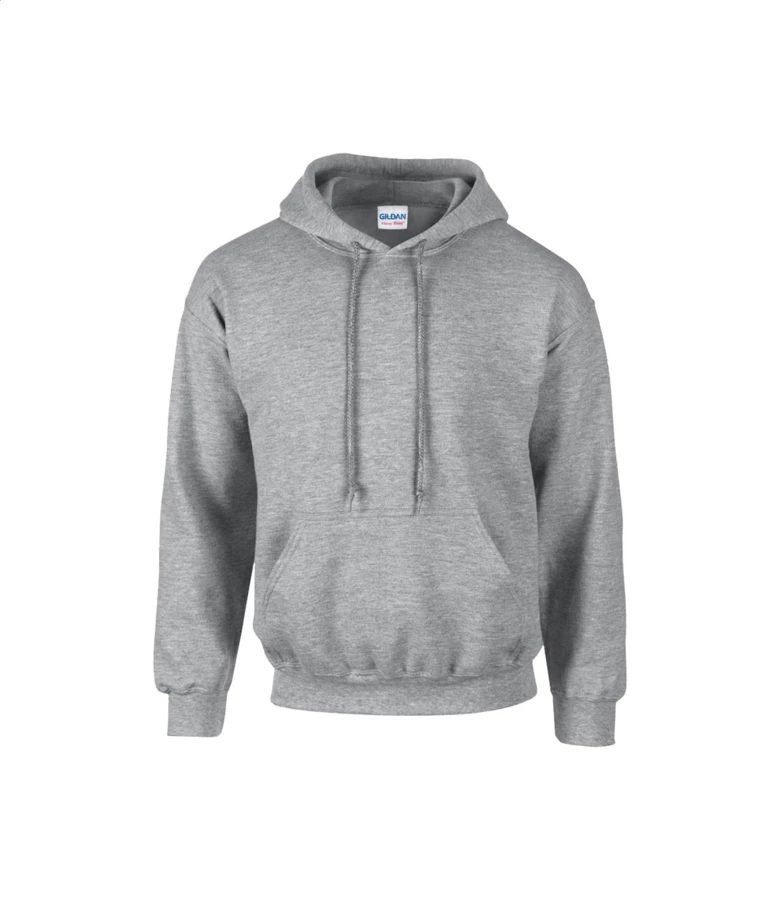 Kapuzen-Sweatshirt mit Vordertasche. Material: 50% Baumwolle und 50% Polyester, 271 g/m² (weiß 257 g/m²). Marke: Gildan.