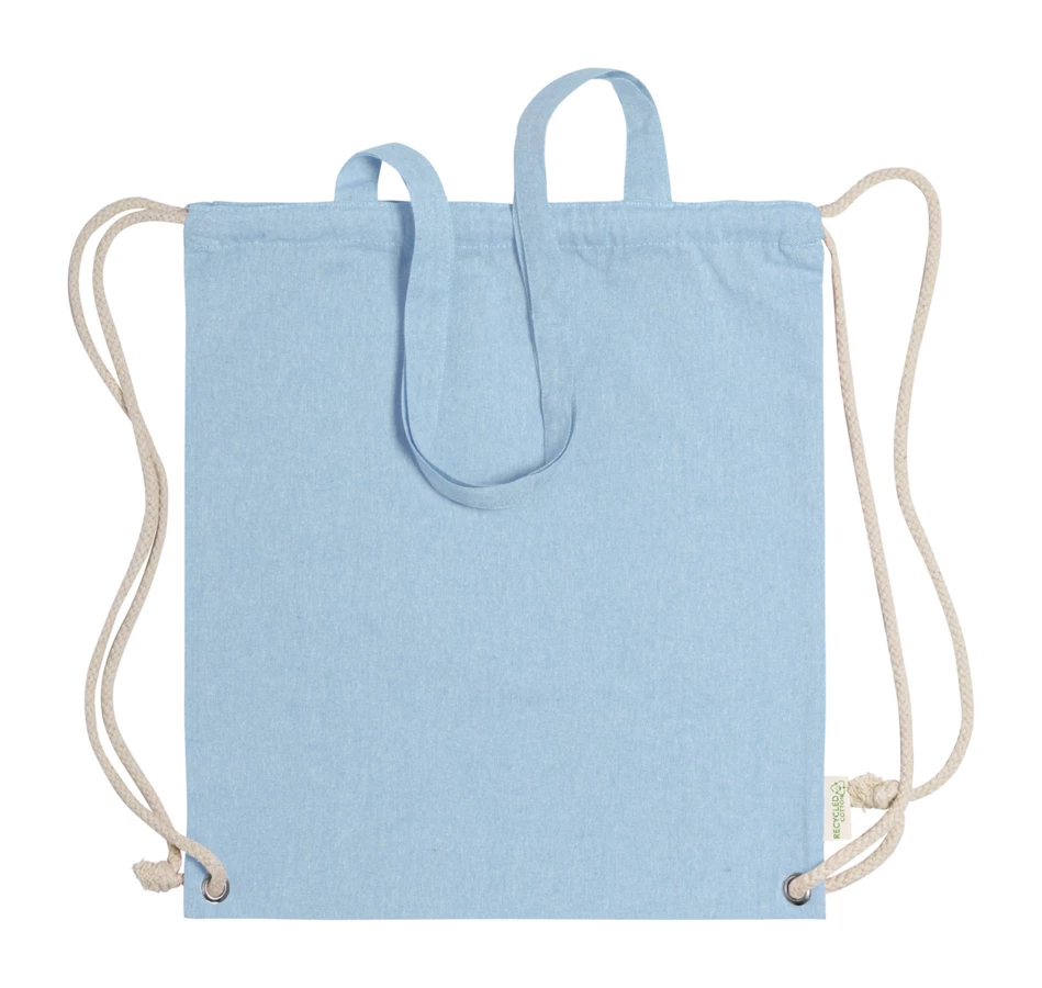 Turnbeutel aus recycelter Baumwolle mit dicken geflochtenen Kordeln und langen Henkeln. Auch als Einkaufstasche verwenbar. Material: 100% recycelte Baumwolle (140 g/m²).
