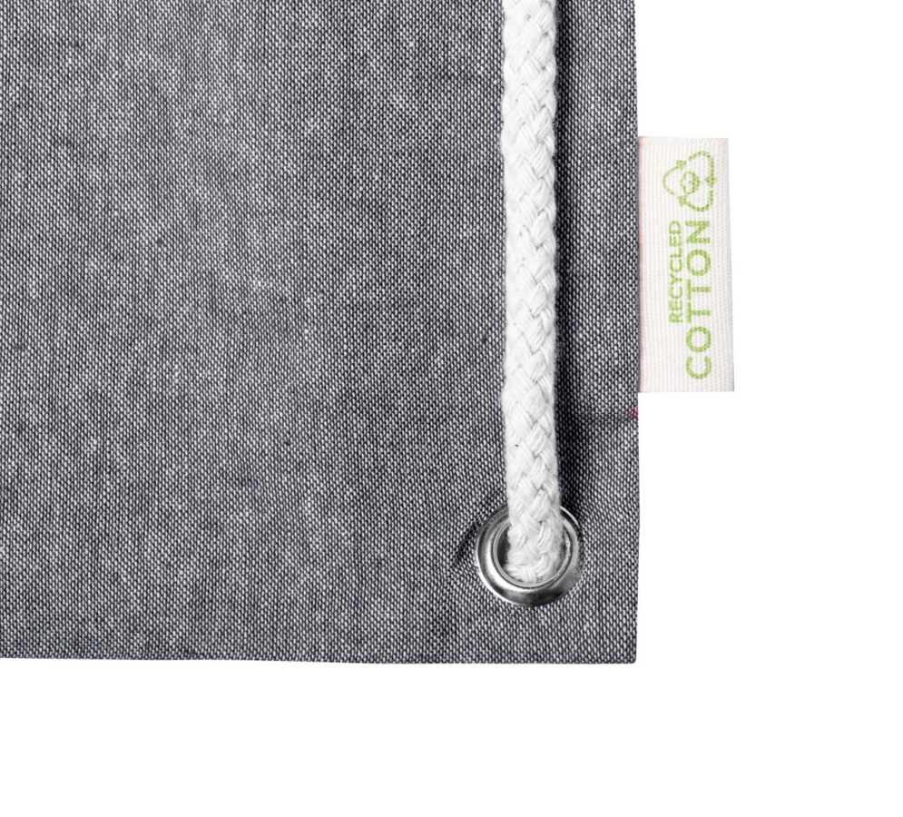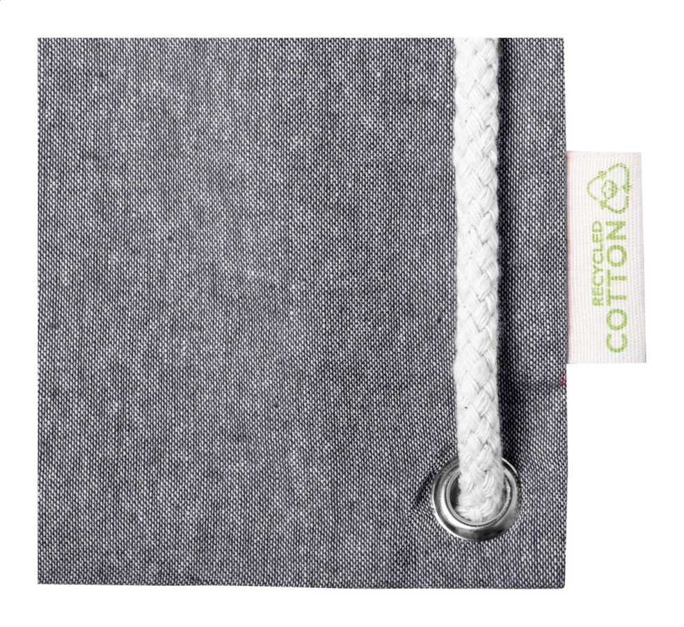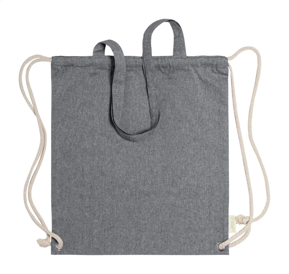 Turnbeutel aus recycelter Baumwolle mit dicken geflochtenen Kordeln und langen Griffen. Auch verwenbar als Einkaufstasche. Material: 100% recycelte Baumwolle (140 g/m²).