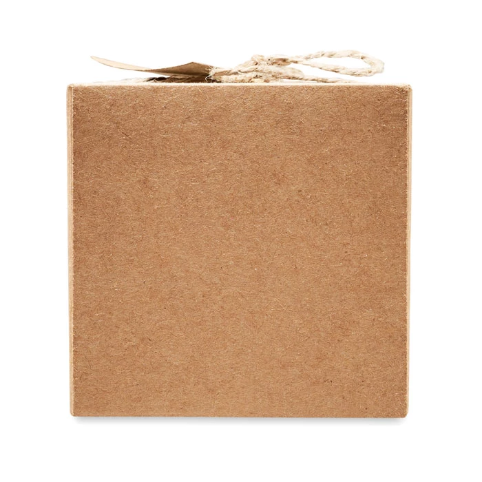Kerzenhalter aus Glas (120 g) mit Tannen-Dekor. Lieferung in einem Display-Karton mit Jutekordel und Geschenkanhänger aus Kraftpapier. Inkl. 1 Kerze.