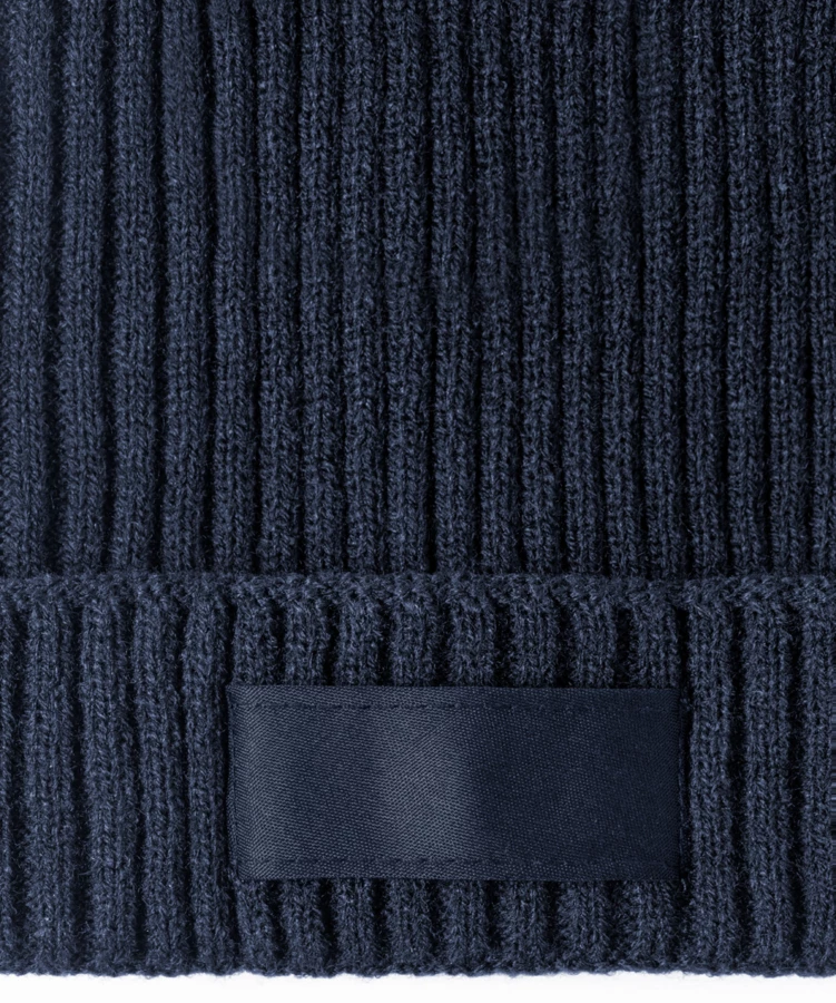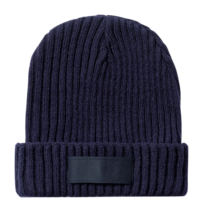 Wintermütze aus Acryl mit bedruckbarem Aufnäher.