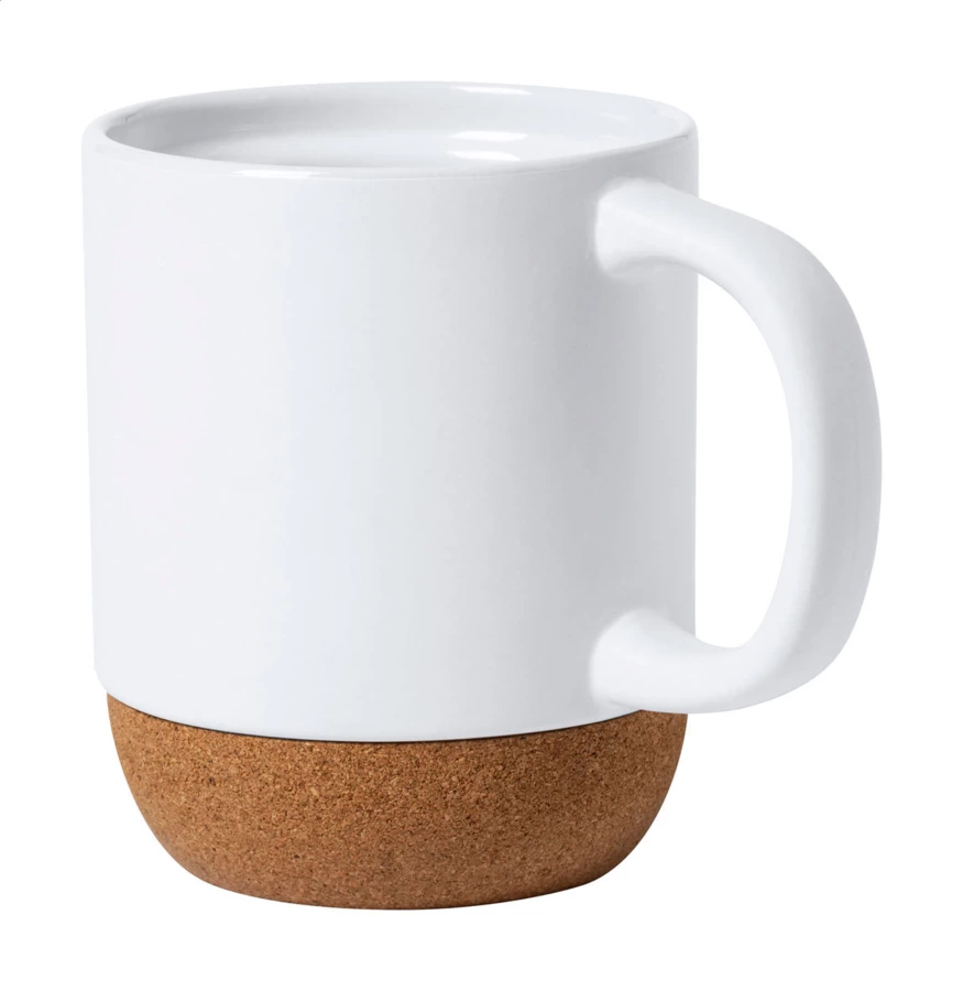 Keramiktasse mit Naturkork-Boden. Füllmenge: 420 ml. Einzeln in Kraftpapierbox.