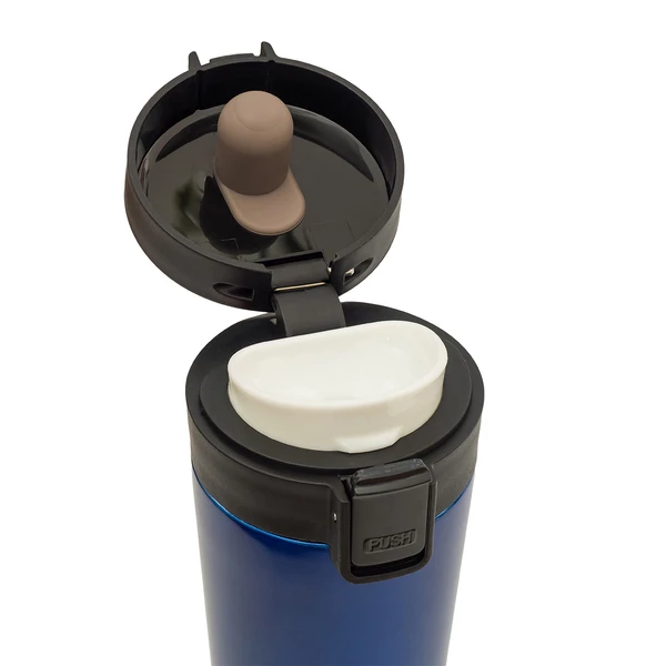 Szczelny kubek izotermiczny o pojemności 350 ml. Dwie ścianki ze stali nierdzewnej, wewnątrz stal 18/8 o podwyższonej jakości. Próżnia pomiędzy ściankami zapewnia bardzo dobre właściwości termoizolacyjne. Utrzymuje temperaturę powyżej 40°C przez 10 godzin. Wyposażony w technologię unbolt&press – oryginalny mechanizm podwójnego zabezpieczenia przeciw wylaniu płynu: szczelne zamknięcie – leak proof zapobiegające wyciekaniu płynów oraz funkcjonalny przycisk open/close z blokadą.
