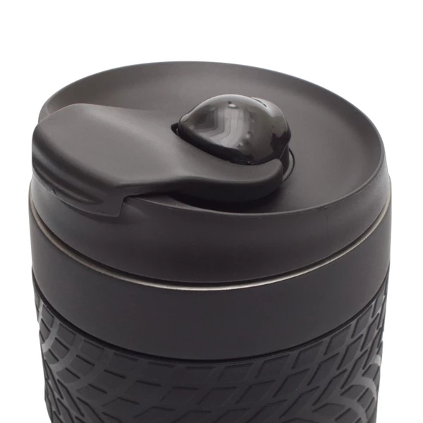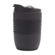 Szczelny kubek izotermiczny z ergonomiczną opaską ułatwiającą trzymanie kubka. Przyssawka umieszczona na spodzie zapobiega przypadkowemu przewróceniu się kubka. Oderwanie od podłoża przez podniesienie kubka pod kątem prostym do góry. Dwie ścianki ze stali nierdzewnej, wewnątrz stal 18/8 o podwyższonej jakości. Utrzymuje temperaturę powyżej 40°C przez 2 godziny. Posiada zamknięcie typu flip up sip i leak proof – zapobiegające wyciekaniu płynów. Pojemność 200 ml.