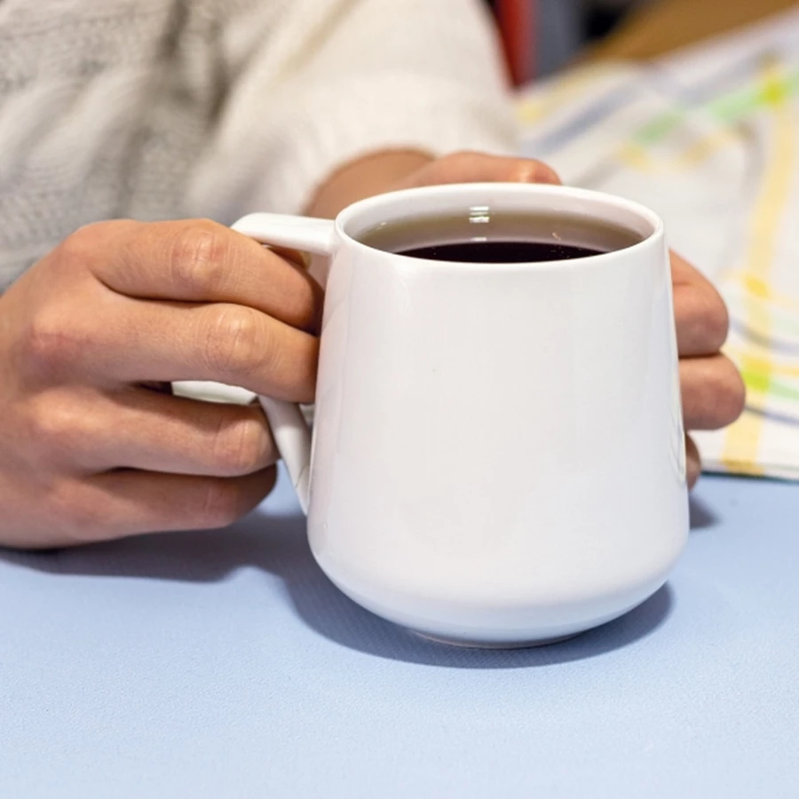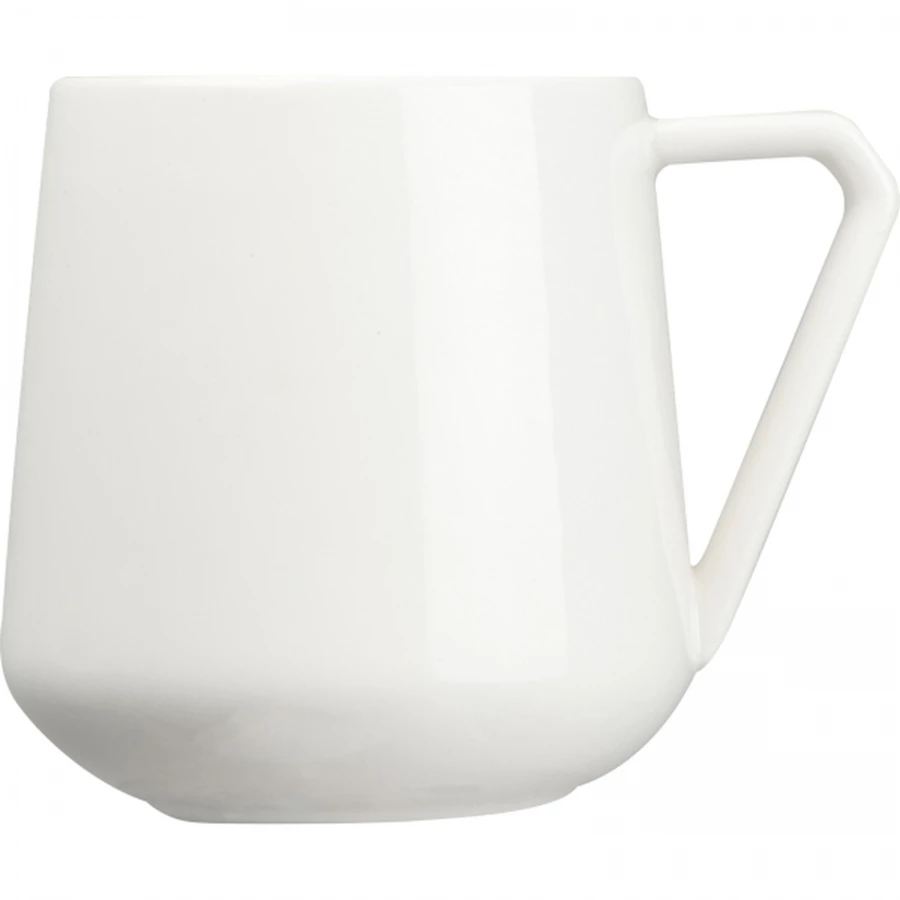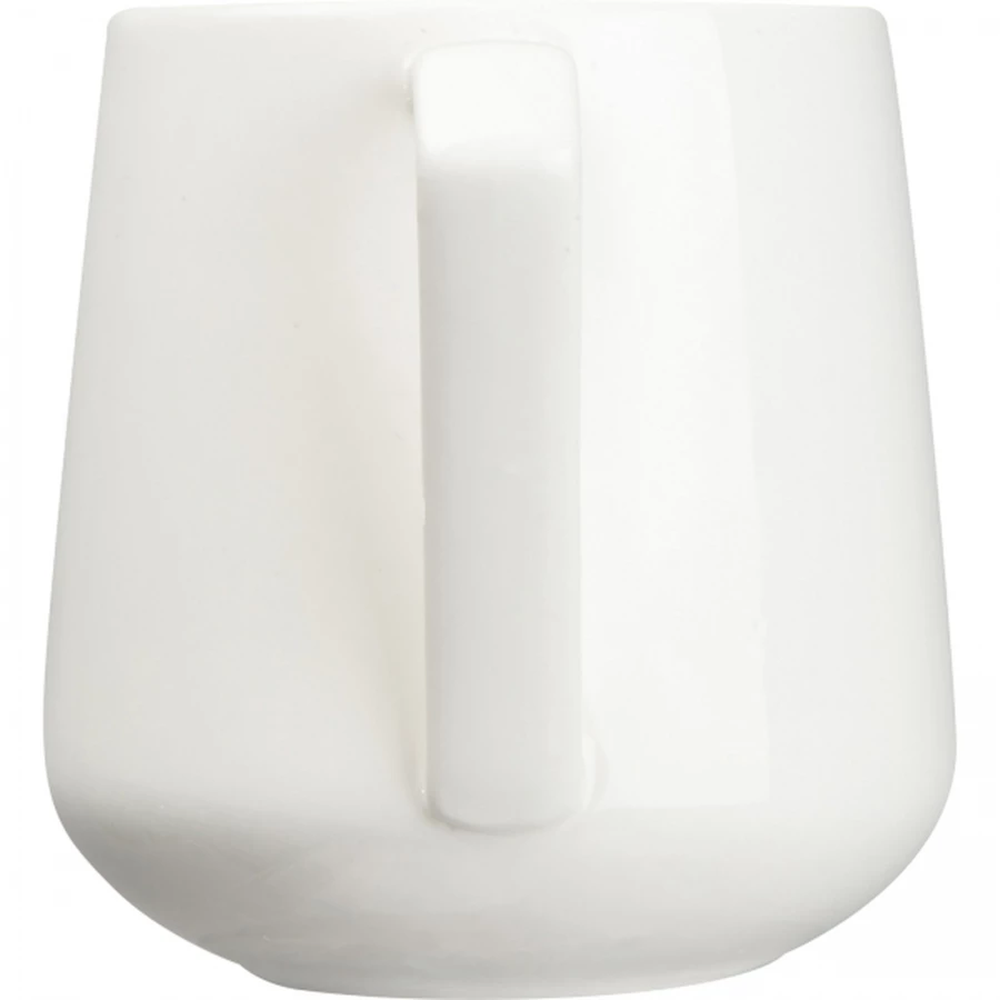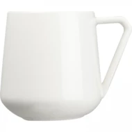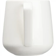 Kubek z nietypowym uchem, wykonany z białej porcelany. Pojemność 300 ml.