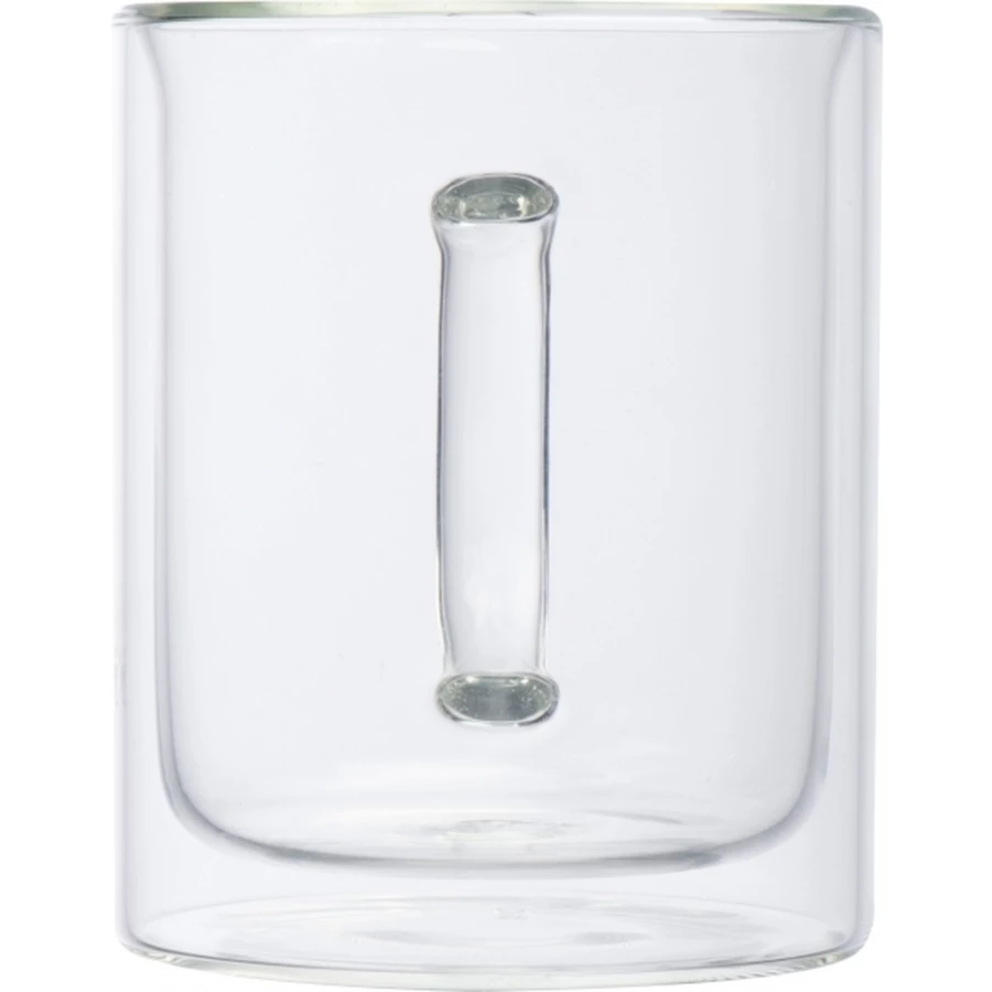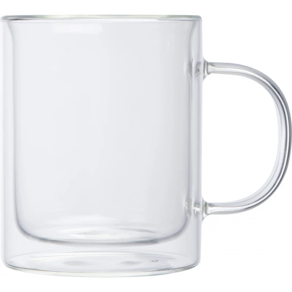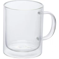 Szklany kubek z podwójnymi ściankami, wykonany ze szkła borokrzemowego. Pojemność 350 ml.